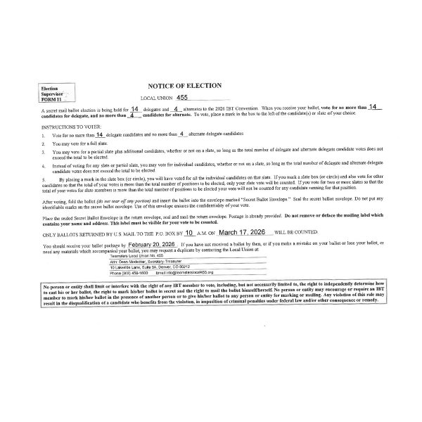 Teamsters Local 455 2026 IBT Convention Delegate Election